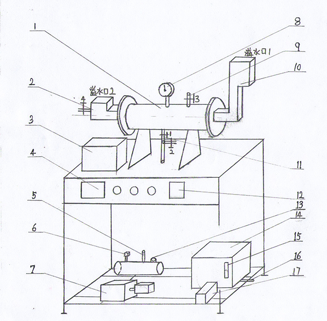 1.工作容器 2.溢流平衡水箱 3.進(jìn)水壓力水箱